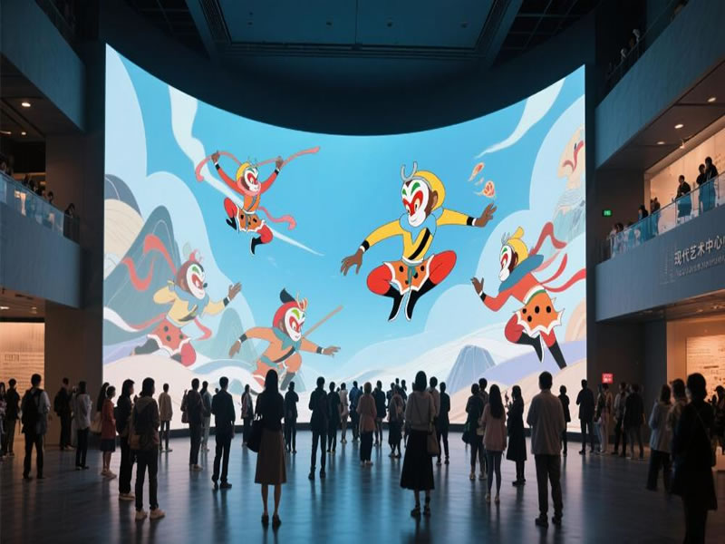 藝術展區更是化身“光影迪士尼”。畫框里的蒙娜麗莎會對著自拍游客比剪刀手,雕塑大衛的投影偶爾會做兩組健美動作,最調皮的是那些滿地亂跑的“數字導覽員”——群光點組成的小兔子會領著觀眾找展品,要是你玩手機不理它,它還會氣鼓鼓地撞你的鞋尖。美院學生小張舉著素描本追光點跑了半天:“這比傳統觀展有意思多了!我剛才對著空白墻畫了個蘋果,結果投影系統給我補了整棵智慧樹!”